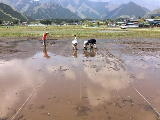 水を張った田圃に初めて入る方もいて、ワクワク、ワイワイ楽しく田植えをしました。